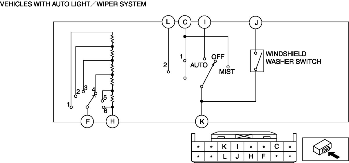Windshield Washer Switch: Testing and Inspection