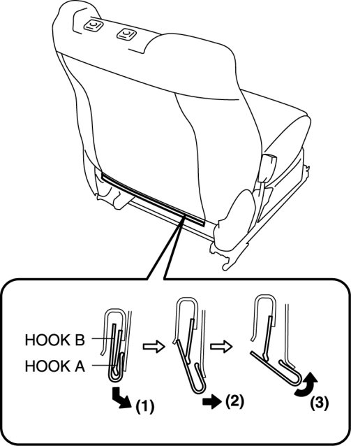 8. Slide hook A in the order shown in the figure to detach it from hook B.