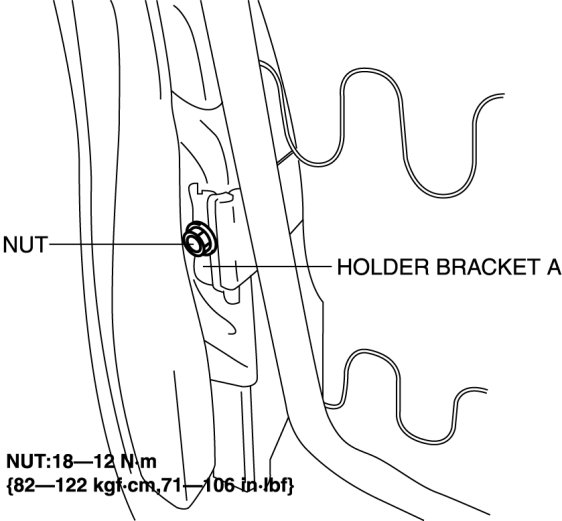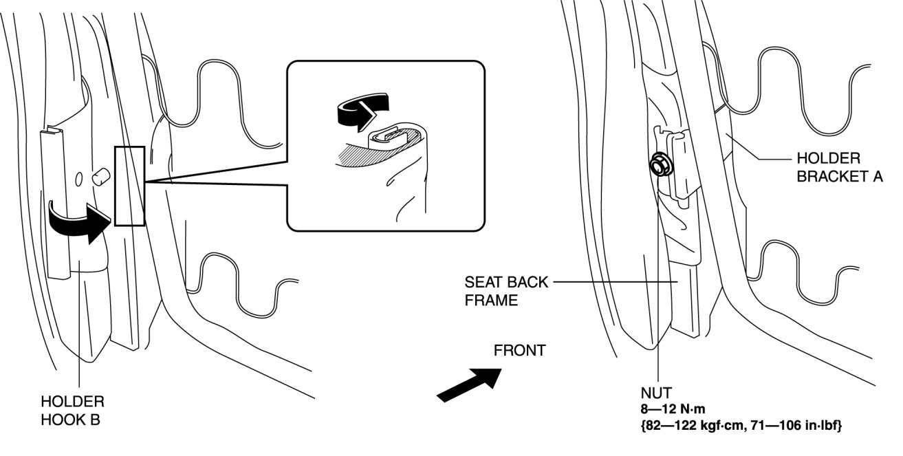 5. Assemble the holder bracket A to the seat back frame and install the nut shown in the figure.