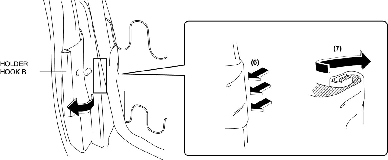 12. Remove the holder hook B in the order of (6), (7) as shown in the figure.