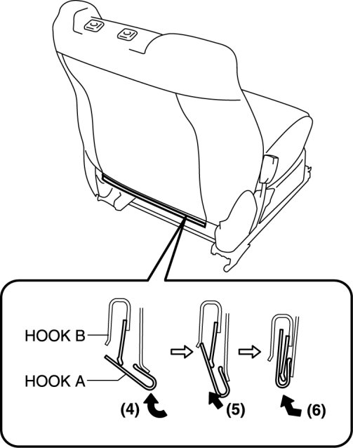 8. Slide hook A in the order of (4), (5), (6) shown in the figure to install it to hook B