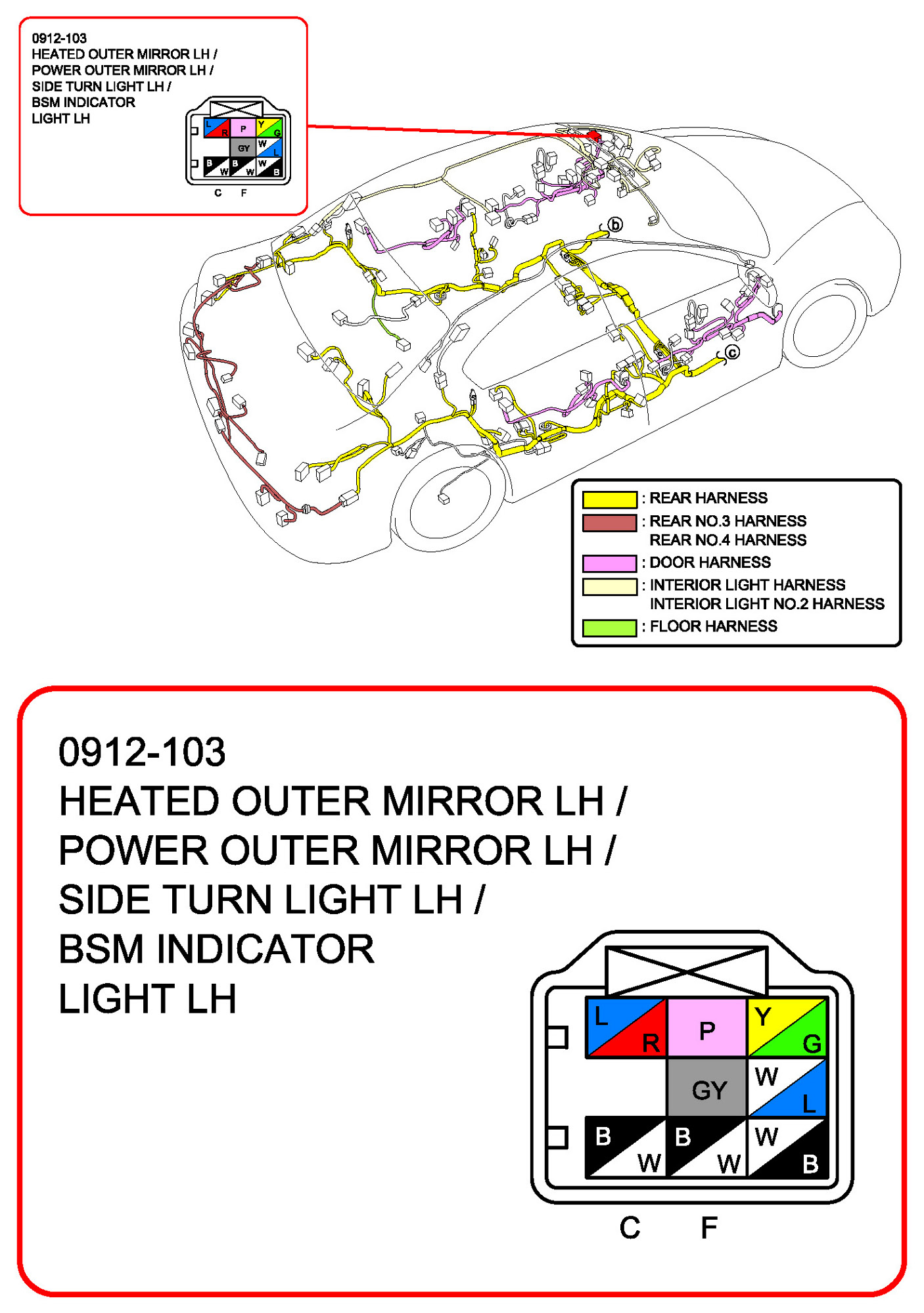 Heated Outer Mirror LH/Power Outer Mirror LH/Side Turn Light LH/BSM Indicator Light LH