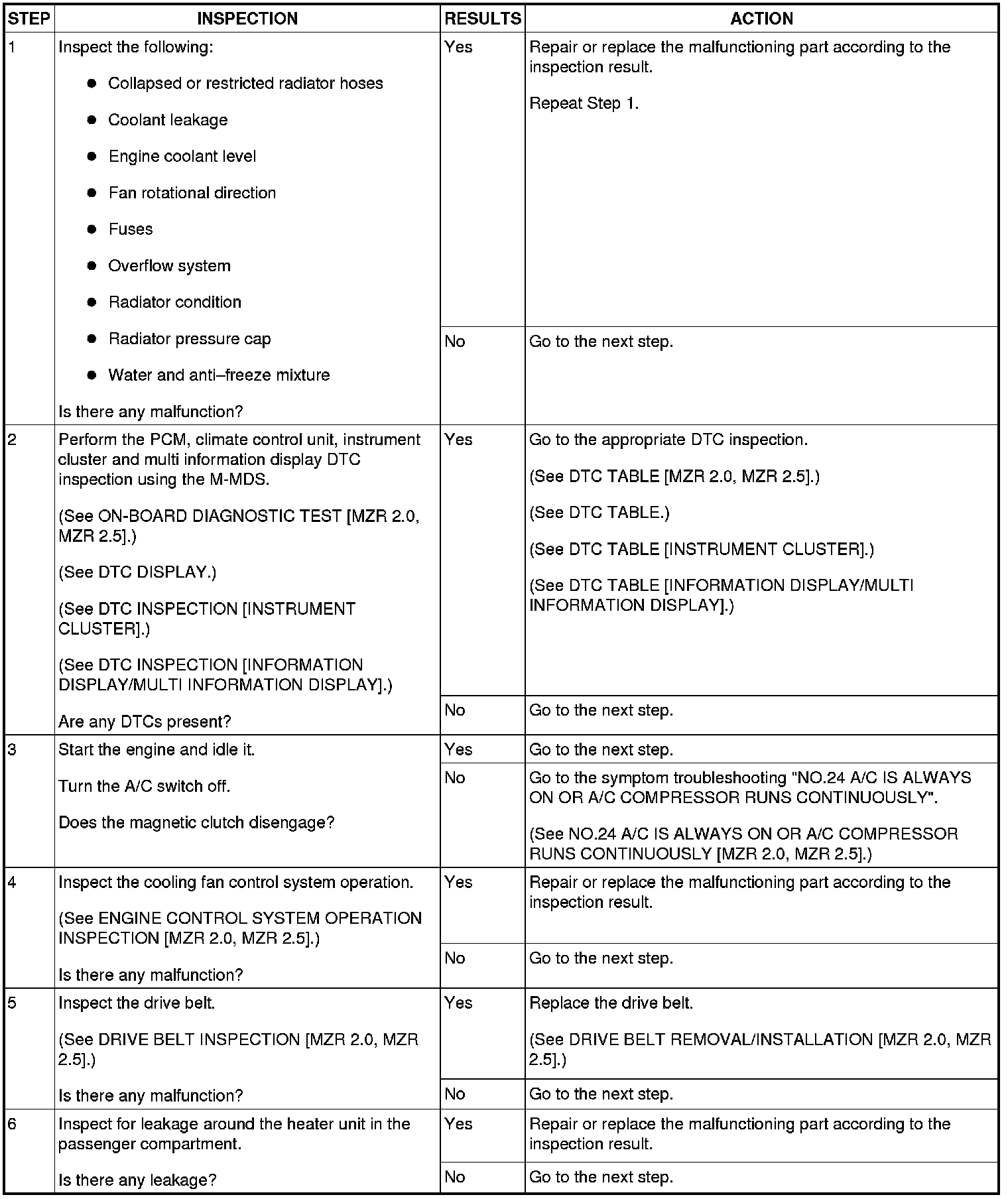 CONCERNS-OVERHEATING [MZR 2.0, MZR 2.5]