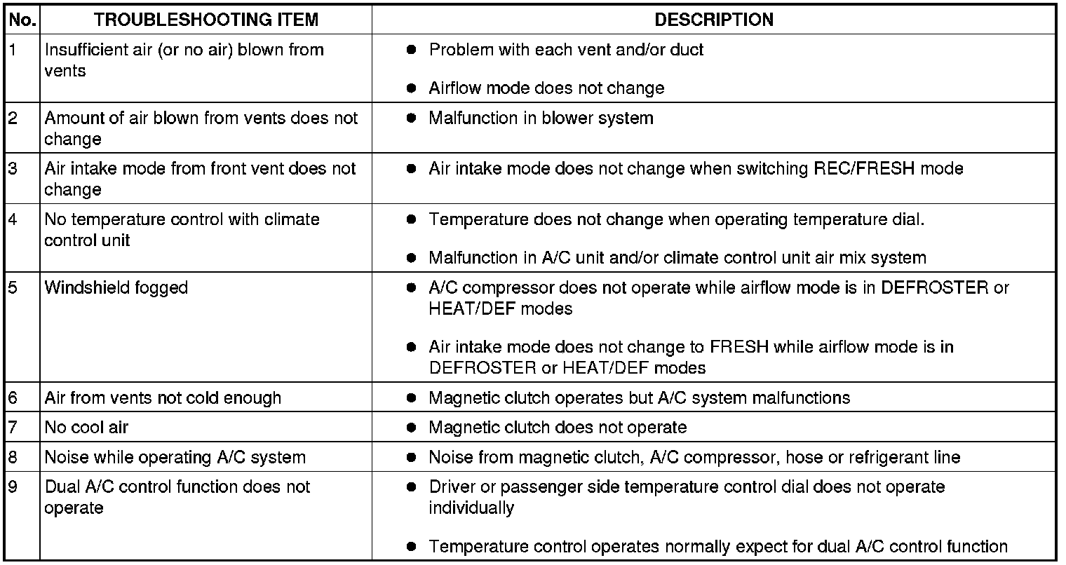TROUBLESHOOTING INDEX [FULL-AUTO AIR CONDITIONER]
