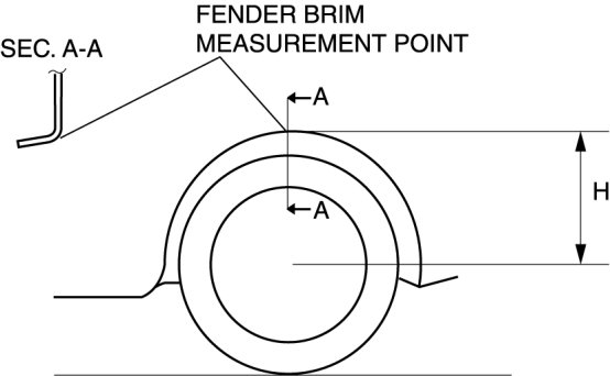 Ride HeightMeasure height H from the center of the wheel to the fender brim.