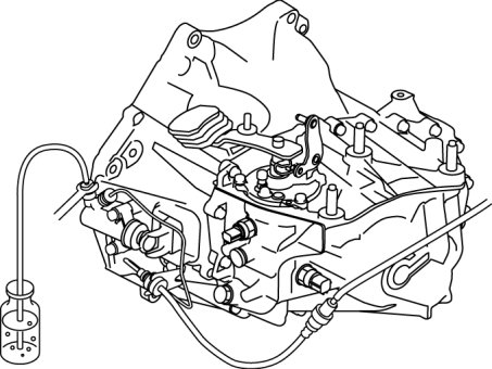 b. Place the other end of the vinyl tube in a clear container, and fill clutch fluid in the container during air bleeding.
