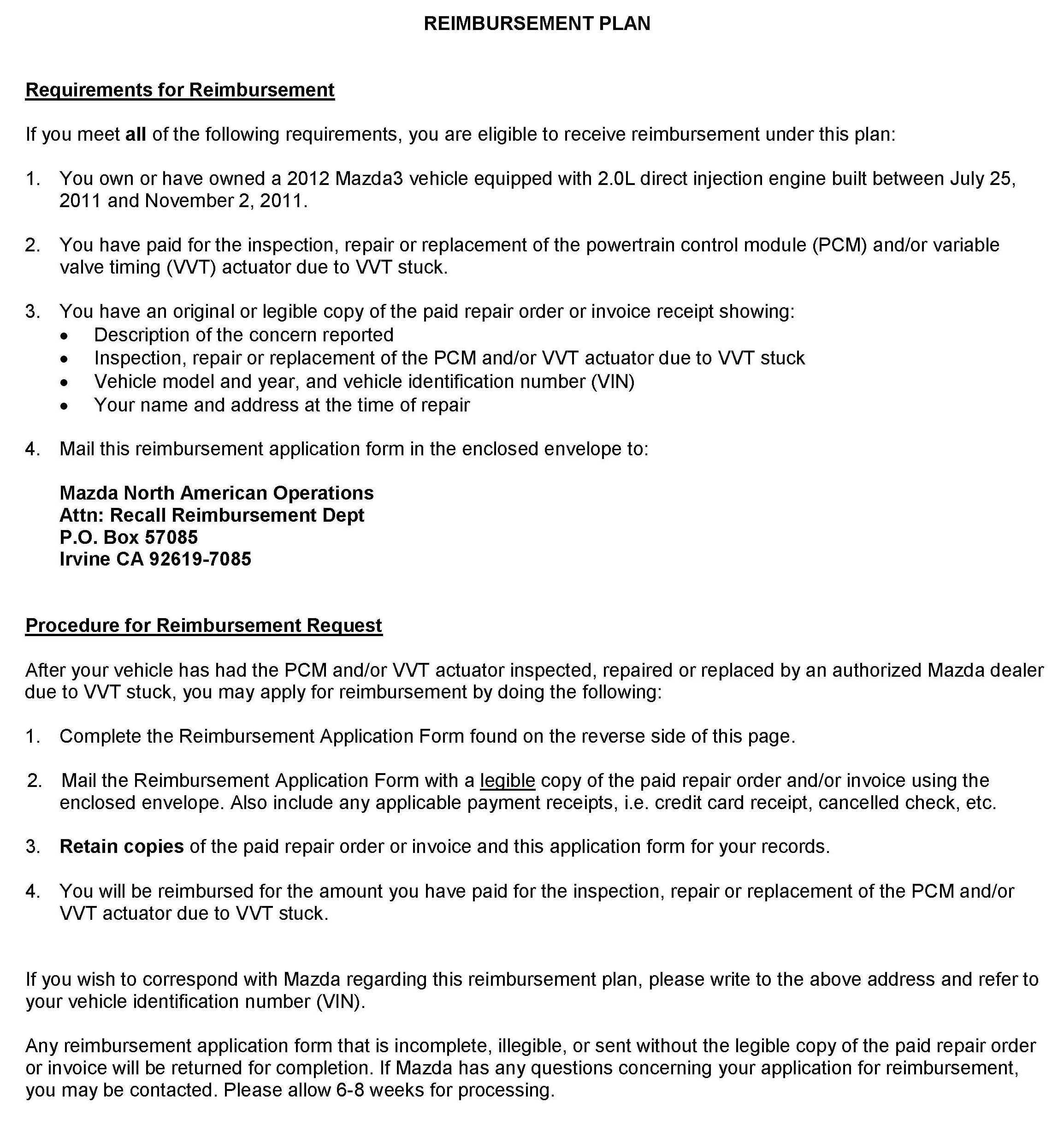 Reimbursement Plan