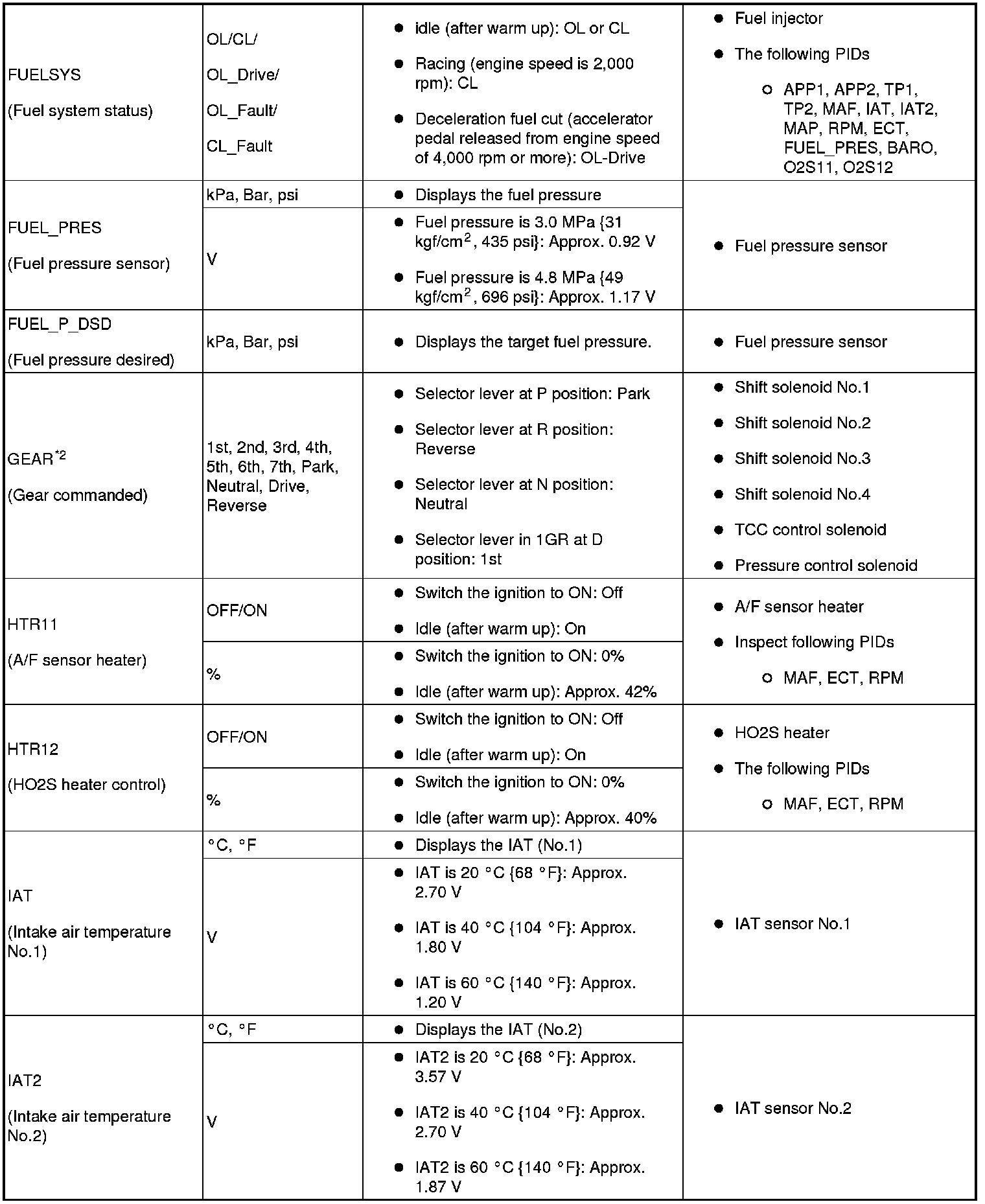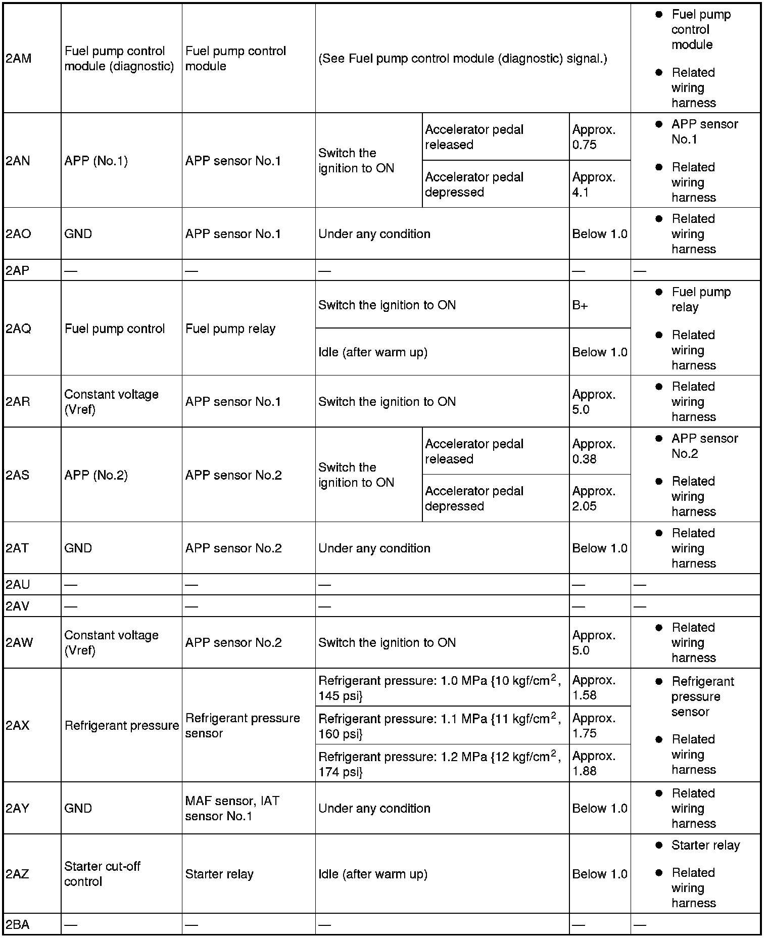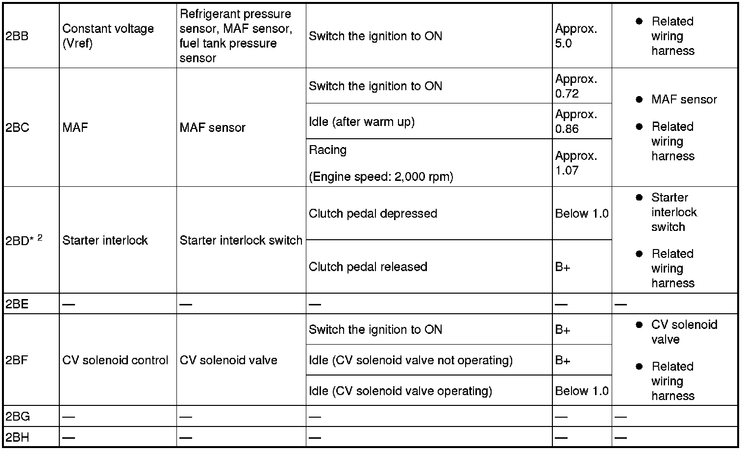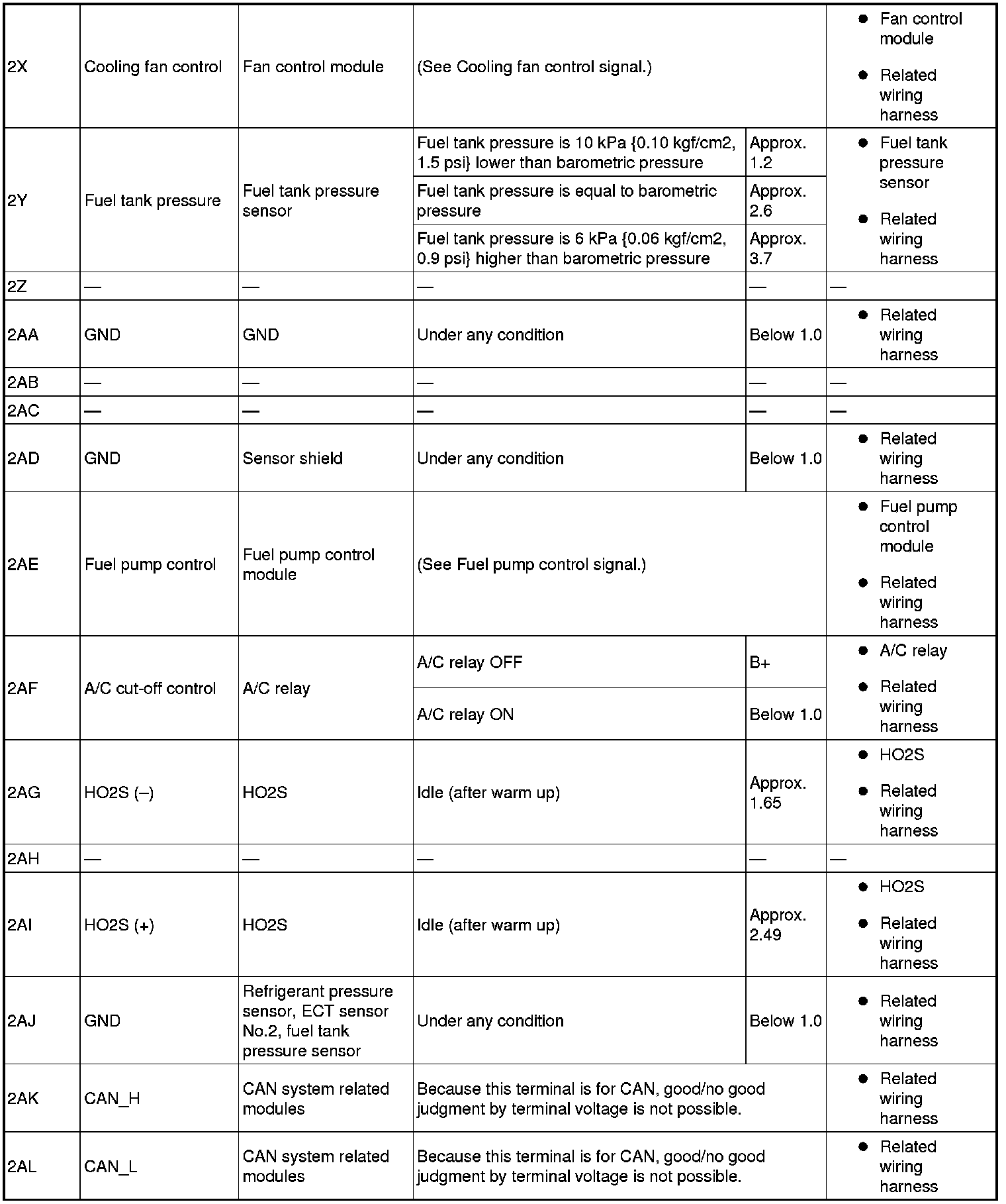 - Because the PCM uses a waterproof connector, the inspection for the voltage/wave pattern cannot be performed. The following values are for reference.