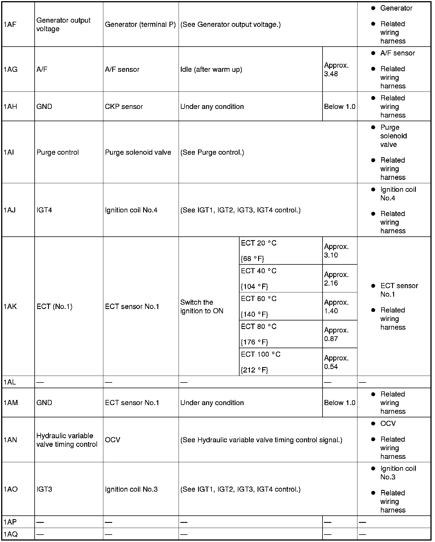 - IGT4(ignition coil No.4): 1AJ(+)-body ground(-)