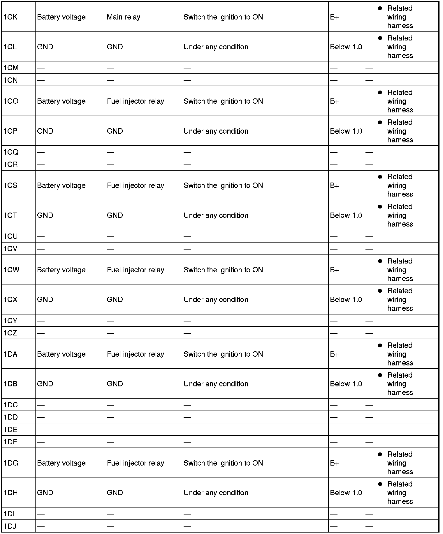 - Fuel Injection No.1: 1DO(+)-body ground(-)