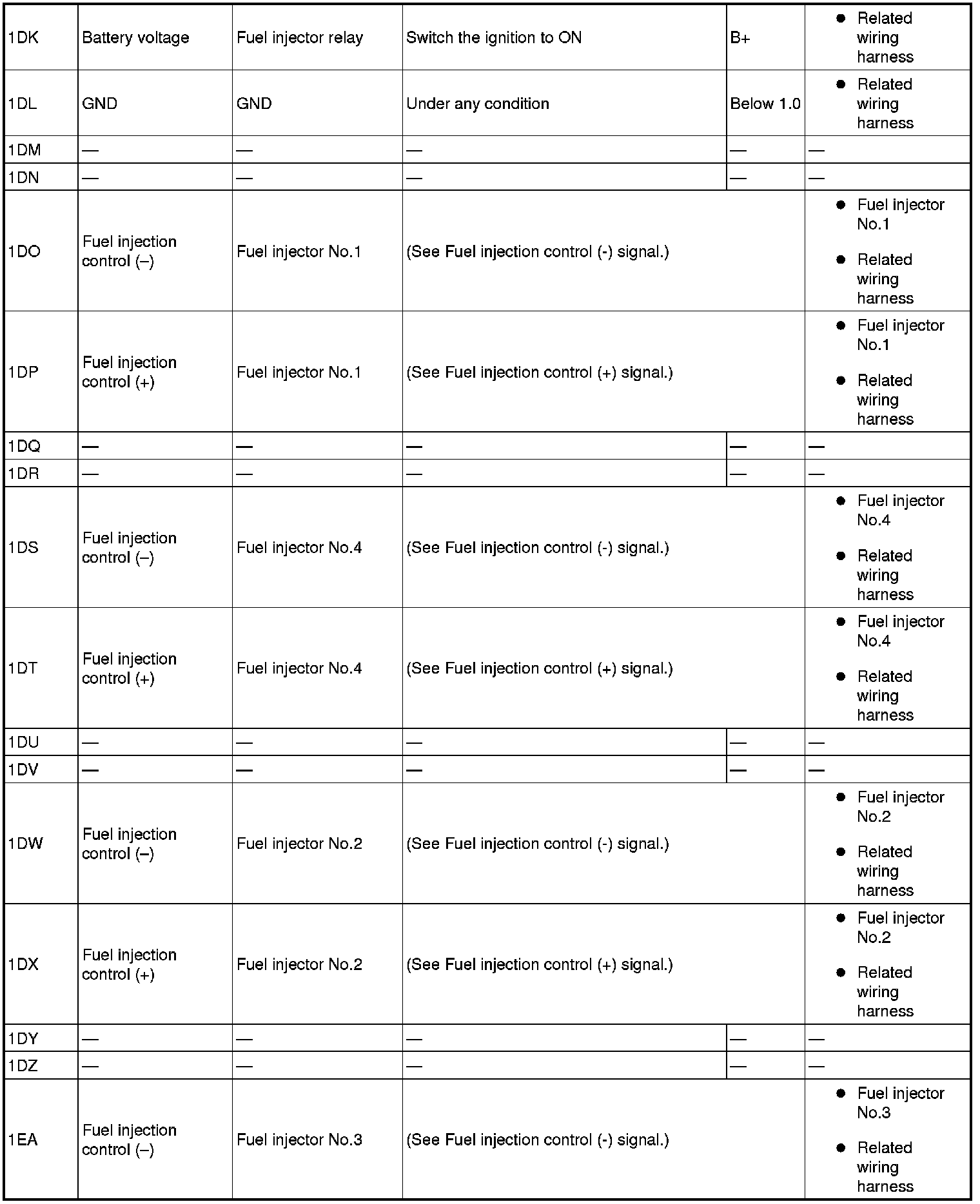 - Fuel Injection No.1: 1DP(+)-body ground(-)
