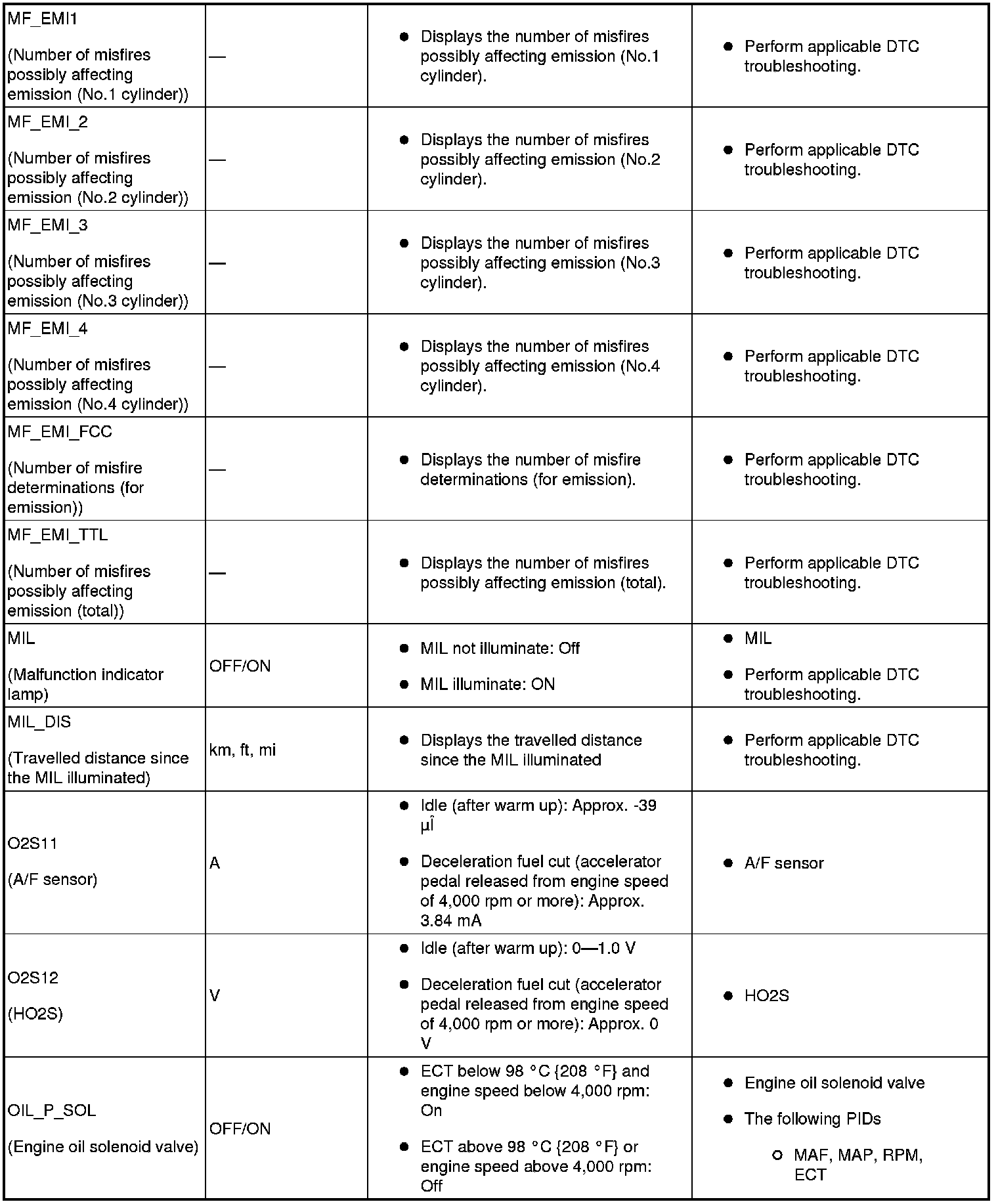 - The PID/DATA MONITOR function monitors the calculated value of the input/output signals in the PCM. Therefore, an output device malfunction is not directly indicated as a malfunction of the monitored value for the output device. If a monitored value of an output device is out of specification, inspect the monitored value of the input device related to the output control.