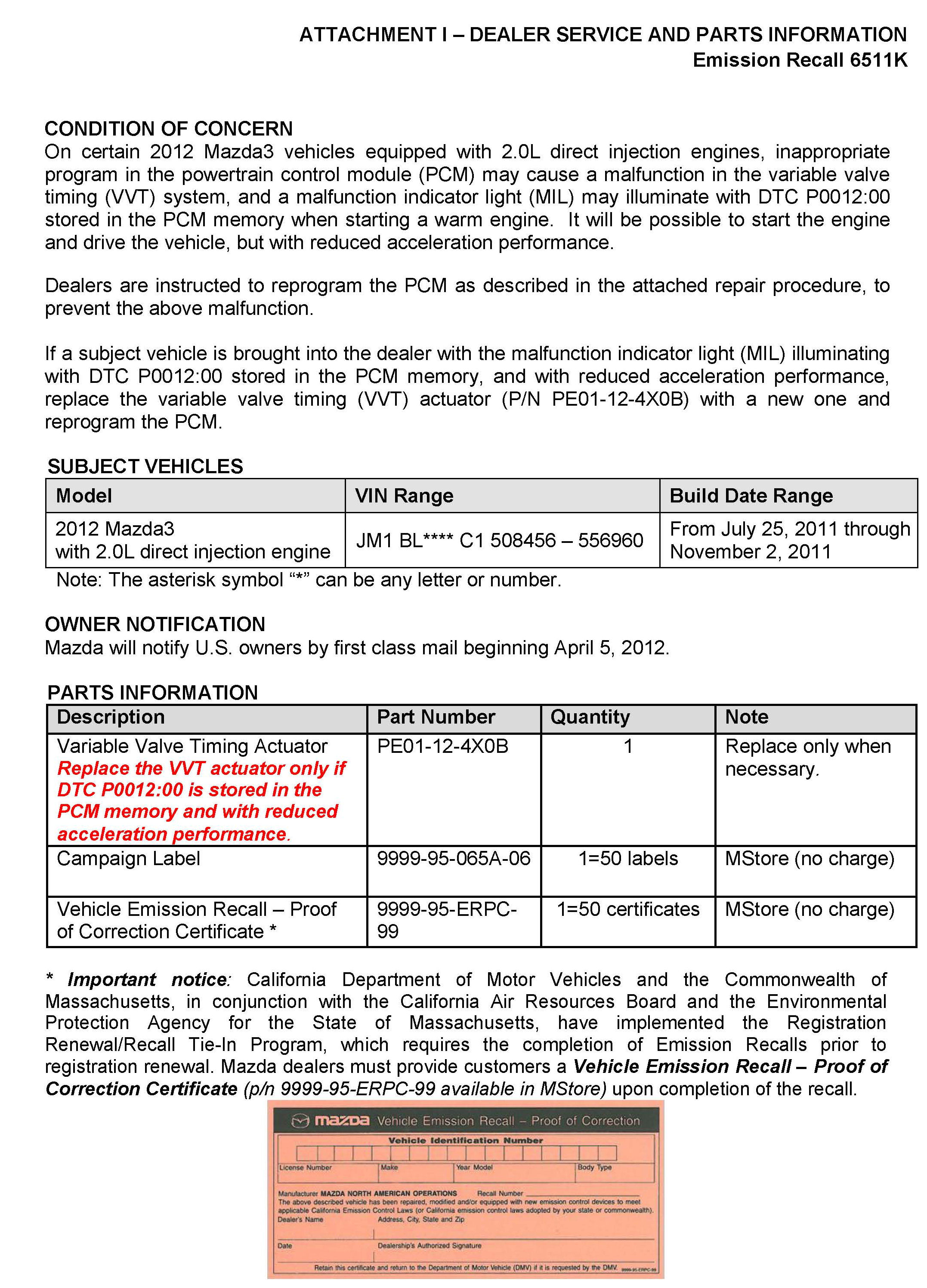 Recall - PCM Update For VVT System Function
