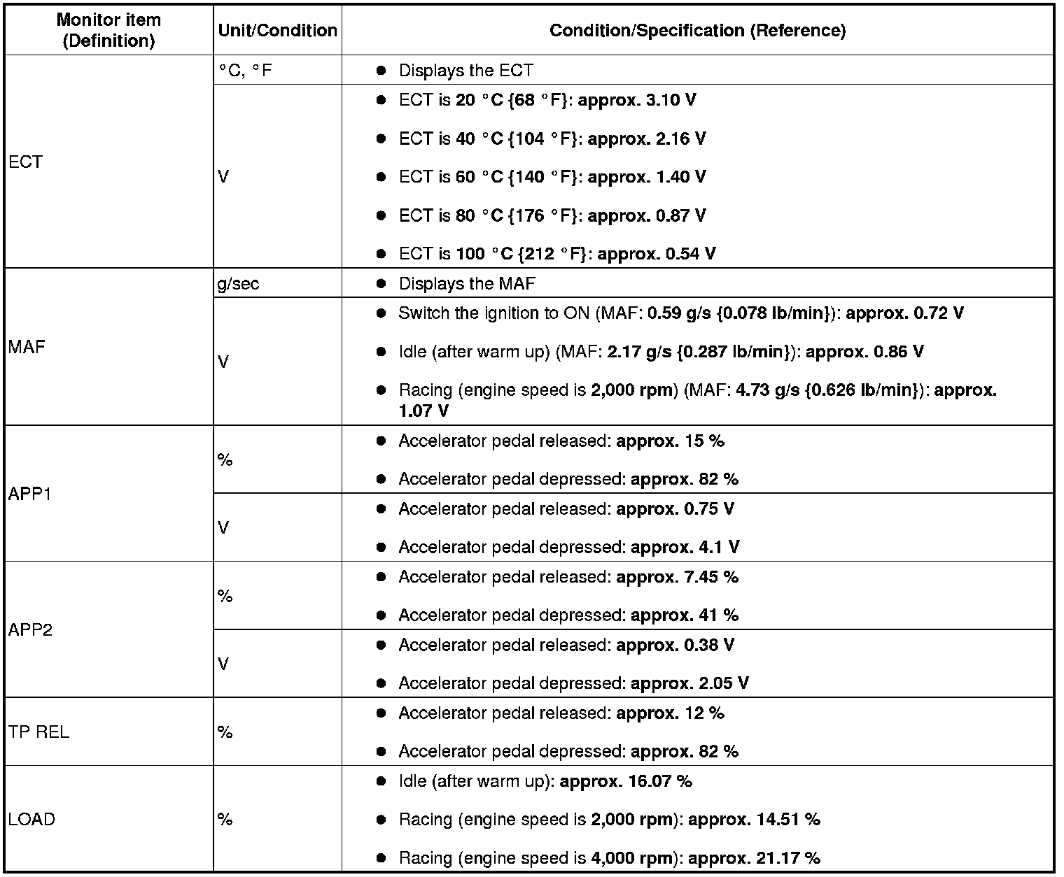 5. Verify that the PID reading is within specification when the accelerator pedal is released.