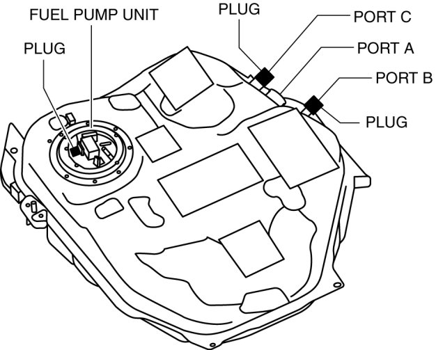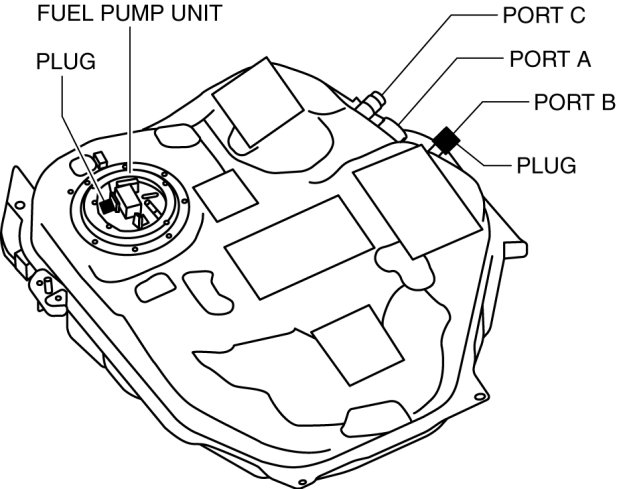 a. Plug the fuel pump unit pipe, ports B and C.