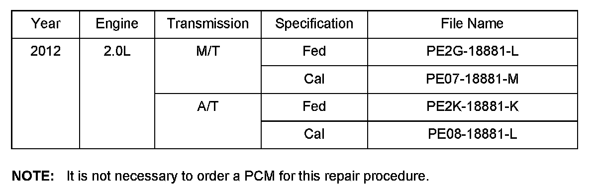 ^ Please be aware that PCM calibration part numbers and file names listed in any Service Bulletin may change due to future releases of IDS software, and additional revisions made to those calibrations for service related concerns.