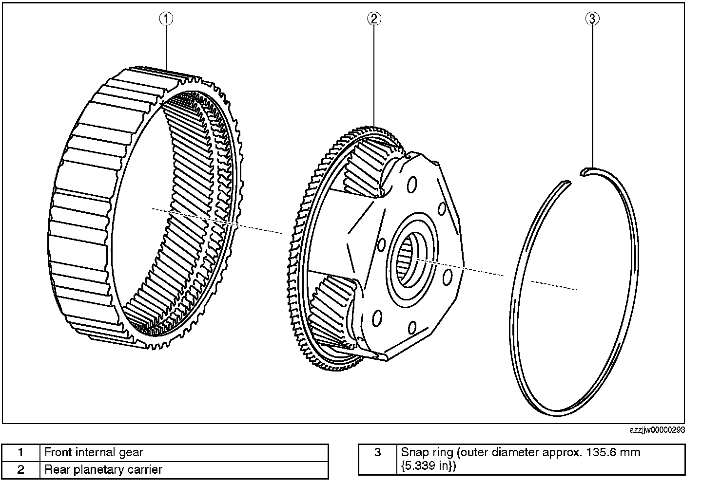 NOTE: Snap ring size: Outer diameter approx. 135.6 mm {5.339 in}