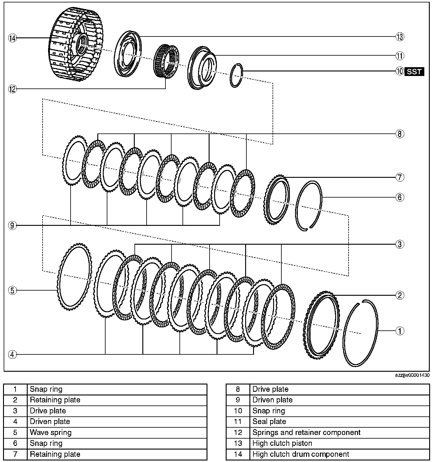 6. Remove the high clutch drum component.