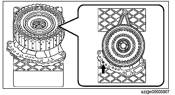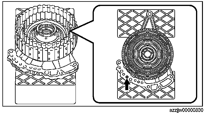 4. Blow compressed air into the oil passage shown in the figure and verify the operation condition of the low clutch.