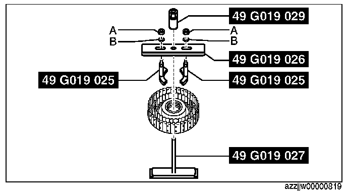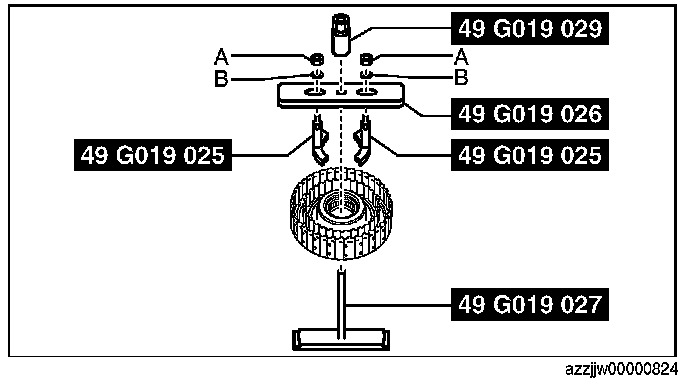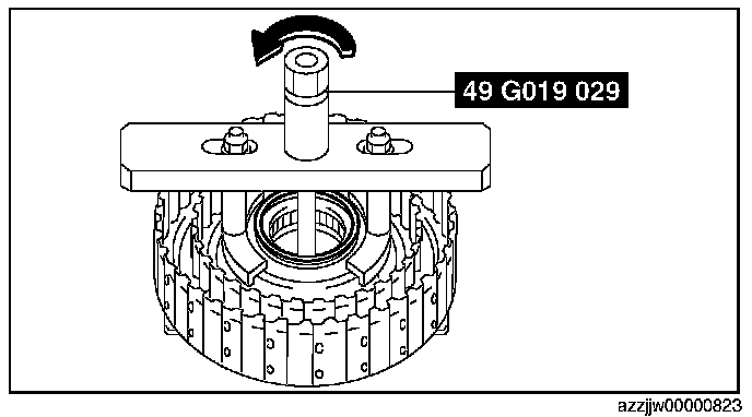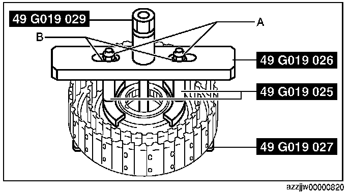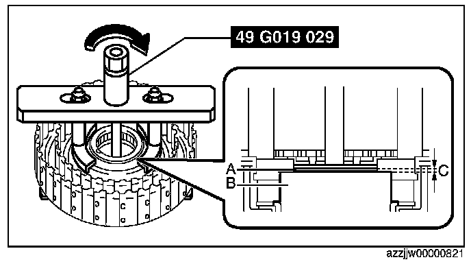 2. Tighten the SST (49 G019 029) until there is no longer any spring force from the springs and retainer component applied to the snap ring.