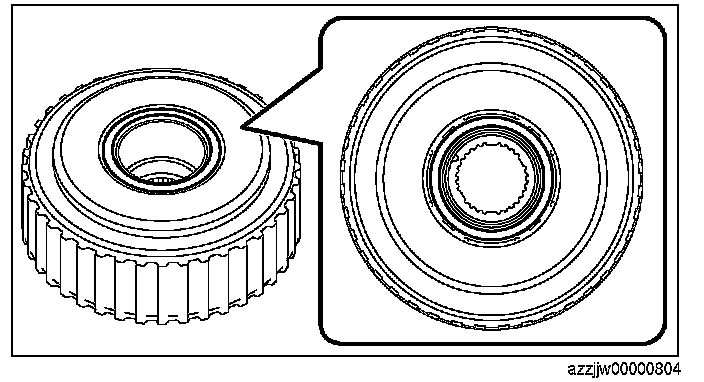 2. Assemble the thrust needle bearing to the high clutch drum component using the following procedure: