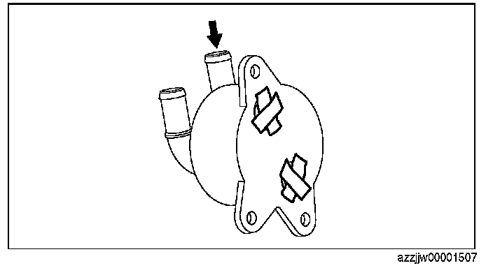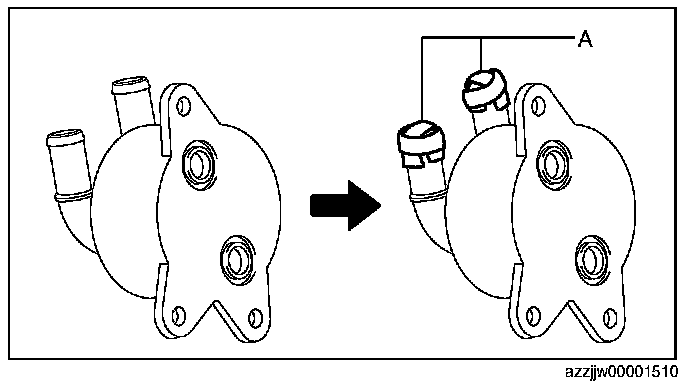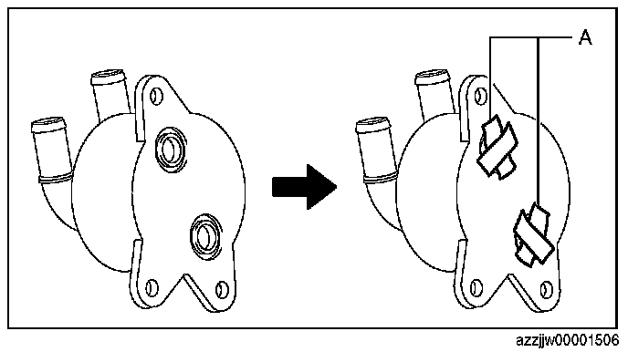 CAUTION: If ATF penetrates the oil cooler (in water passage), it could cause a malfunction. Therefore, when flushing the oil cooler (oil passage), plug the position (water passage) shown in the figure with packing tape.