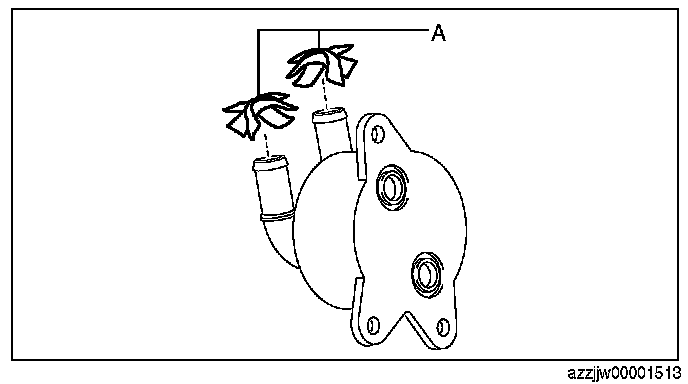 CAUTION: If engine coolant or water penetrates the oil cooler (in oil passage), it could cause a malfunction. Therefore, when flushing the oil cooler (water passage), plug the position (oil passage) shown in the figure with packing tape.