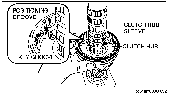 2. Align the projection of the synchronizer ring with the key groove of the clutch hub.