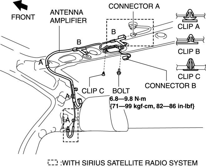 7. Disconnect the connector A. (with SIRIUS satellite radio system)