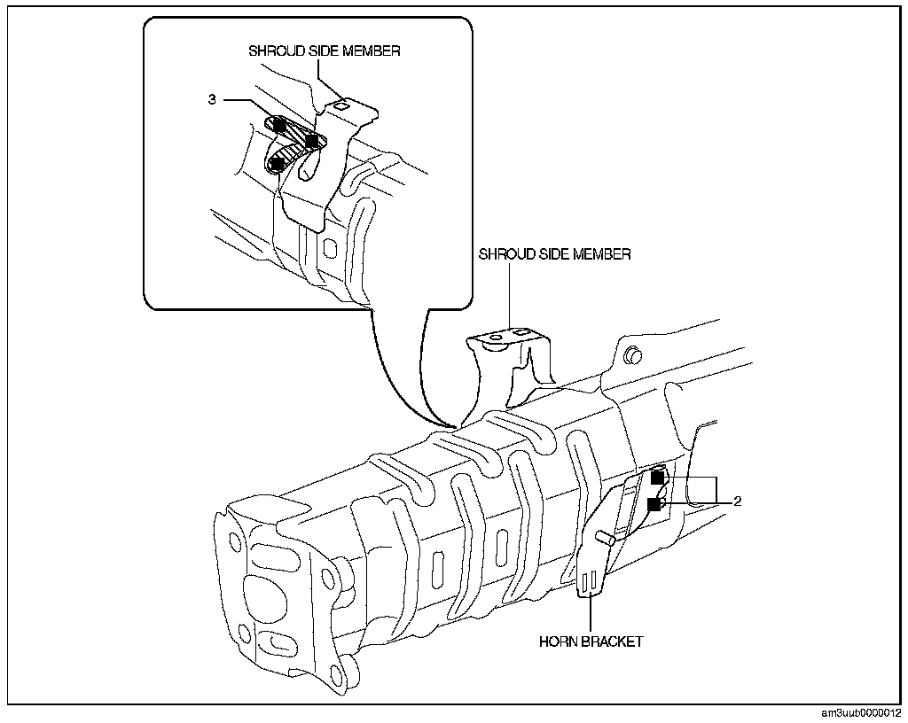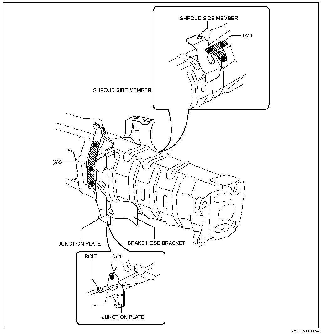 3. Remove the shroud side member, brake hose bracket and junction plate.