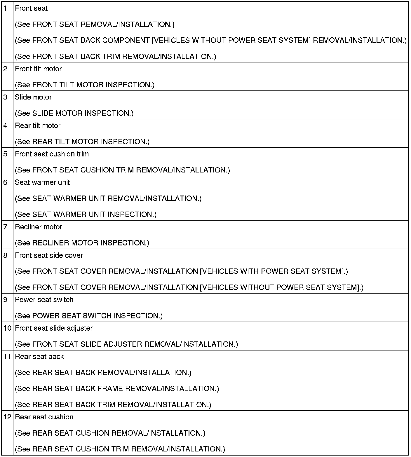 SEATS LOCATION INDEX