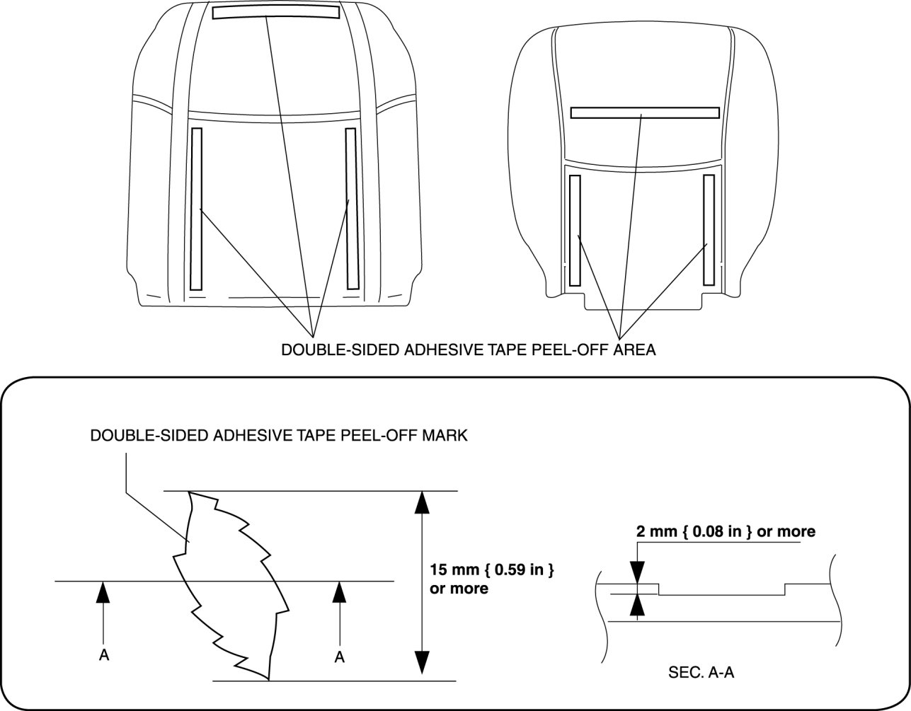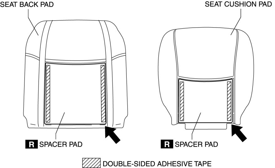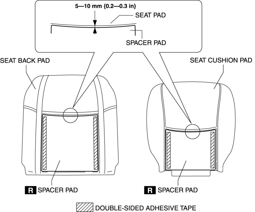 - If there are any peel-off marks from the seat back pad and seat cushion pad remaining after they have been peeled off, the seat pad cannot be reused and it must be replaced with a new one.