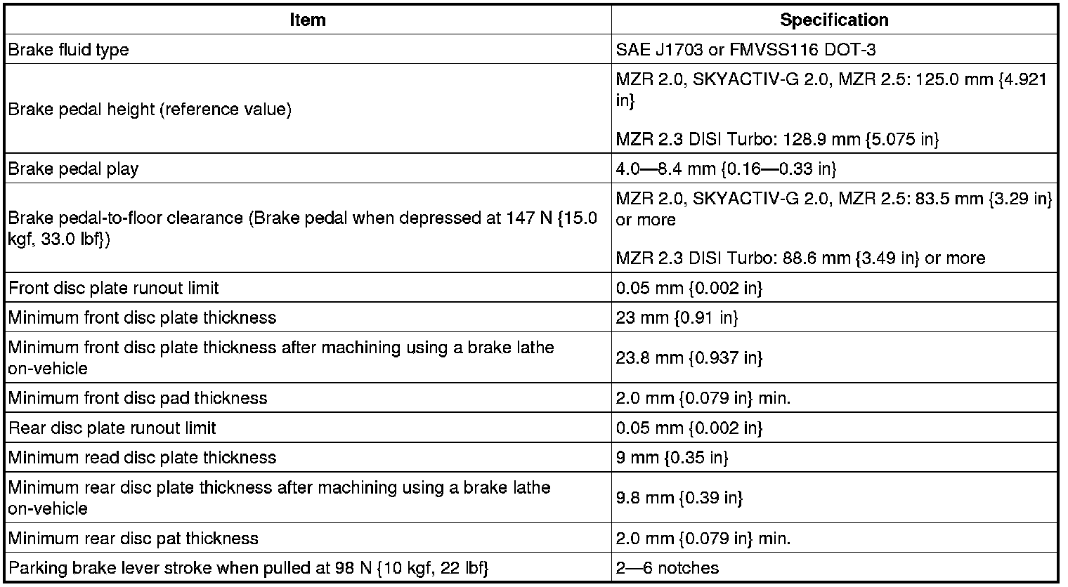 Master cylinder fluid pressure (MZR 2.0, SKYACTIV-G 2.0, MZR 2.5)