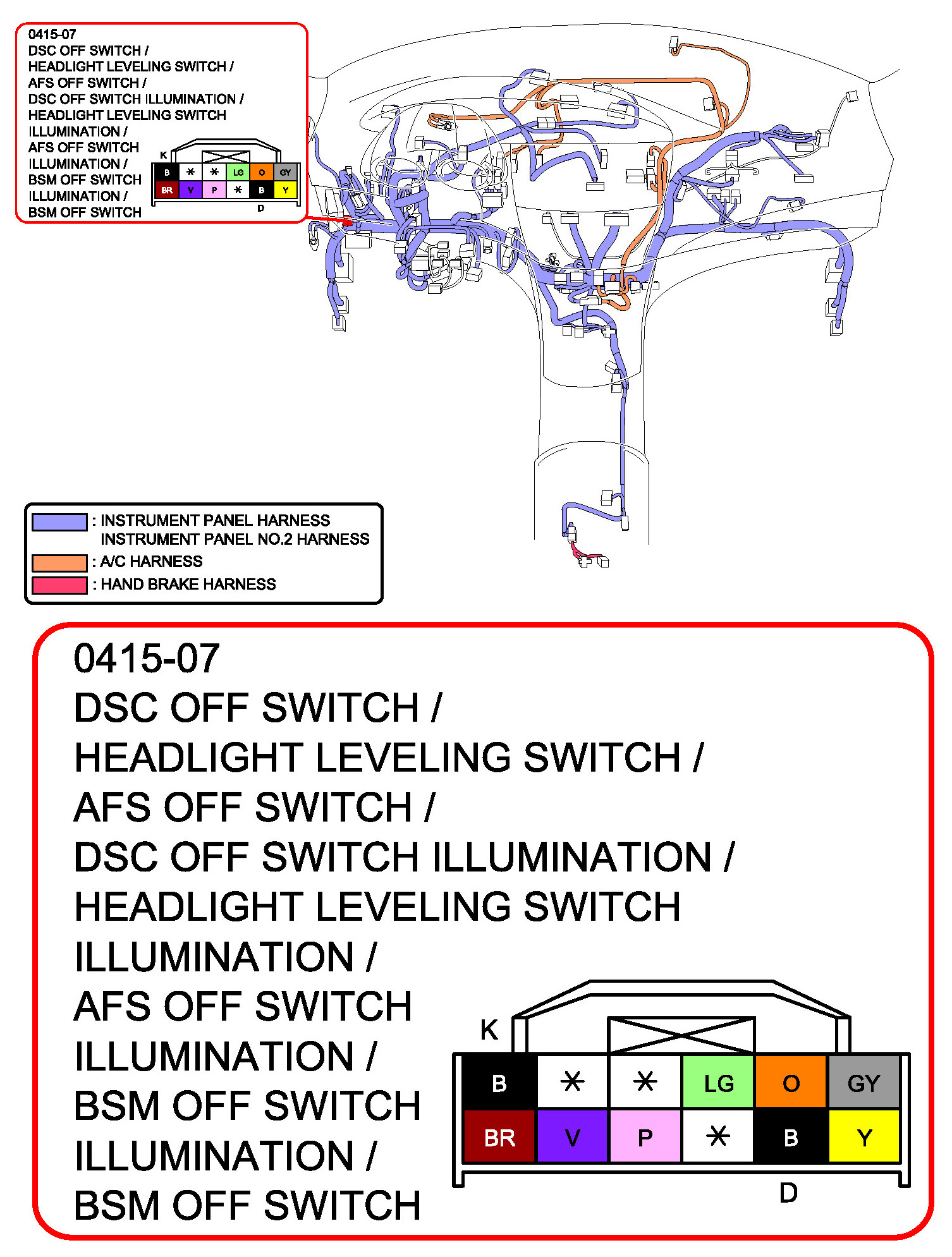 DSC OFF Switch/Headlight Leveling Switch/AFS OFF Switch/DSC OFF Switch Illumination/Headlight Leveling Switch Illumination/AFS OFF Switch Illumination/BSM OFF Switch Illumination/BSM OFF Switch