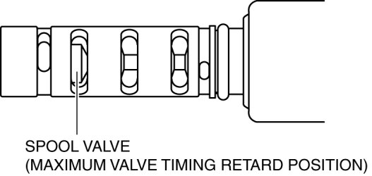 2. Verify that the spool valve in the OCV is in the maximum valve timing retard position as indicated in the figure.