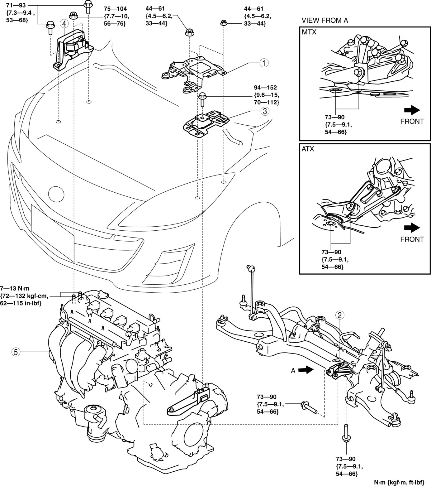 - 94-152 Nm {9.6-15 kgf-m, 70-112 ft-lbf}