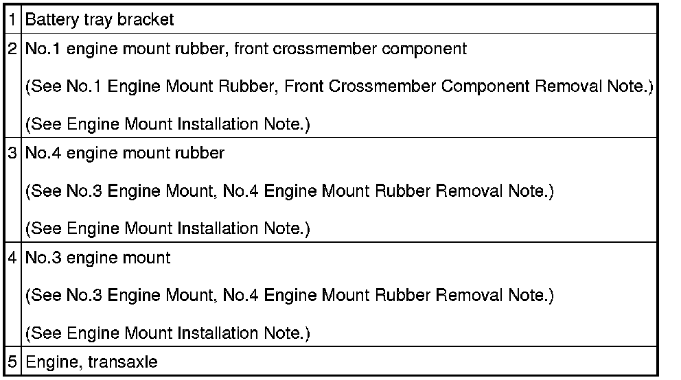 No.1 Engine Mount Rubber, Front Crossmember Component Removal Note