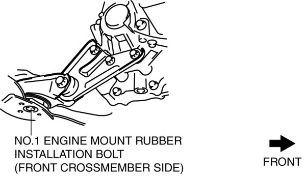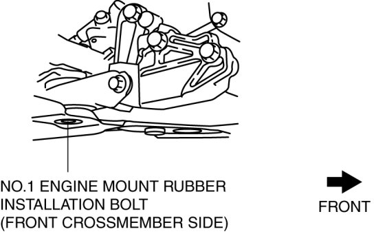 1. Loosen the No.1 engine mount rubber installation bolt (front crossmember side) shown in the figure.
