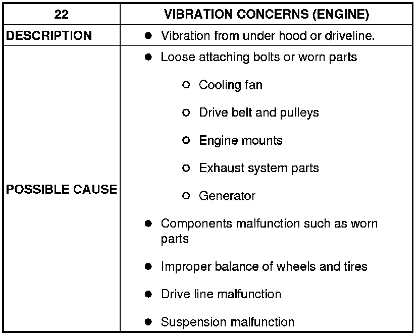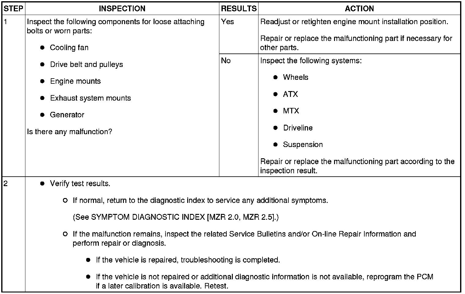 NO.22 VIBRATION CONCERNS (ENGINE) [MZR 2.0, MZR 2.5]