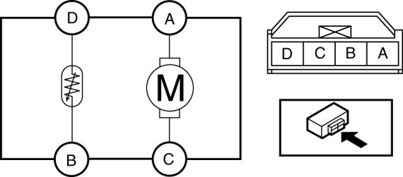 2. Connect battery positive voltage to passenger compartment temperature sensor terminal A and connect terminal C to ground to verify fan operation.