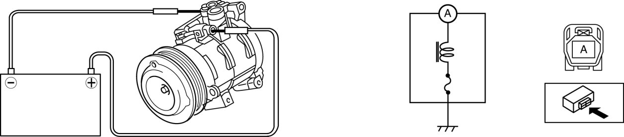 1. Connect battery to terminal A of magnetic clutch and ground to A/C compressor body.