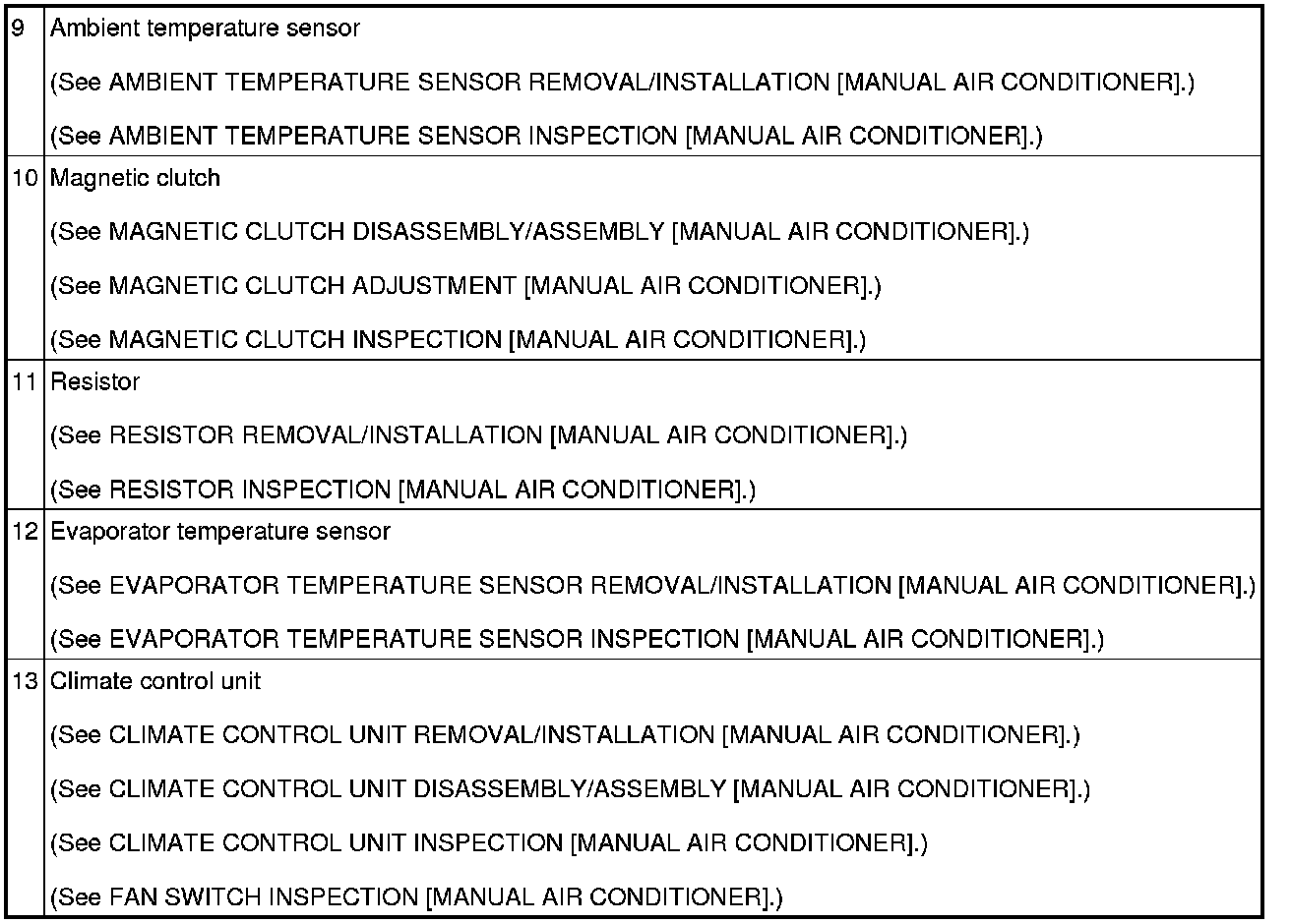HVAC CONTROL SYSTEM LOCATION INDEX [MANUAL AIR CONDITIONER]