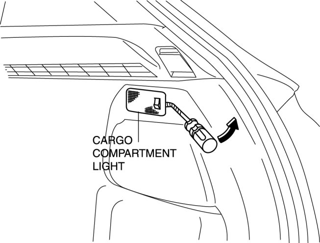 2. Insert a tape-wrapped fastener remover into the service hole and pry with the screwdriver in the direction shown by the arrow to remove the cargo compartment light.