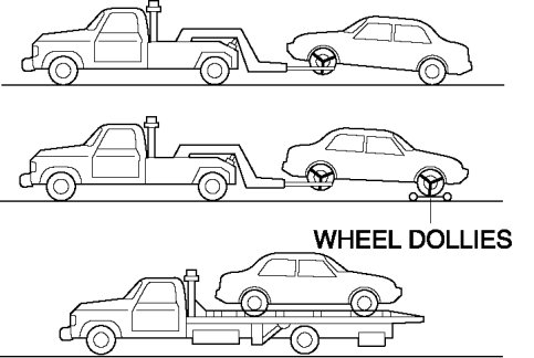- A towed vehicle usually should have its drive wheel (front wheels) off the ground. If excessive damage or other conditions prevent this, use wheel dollies.