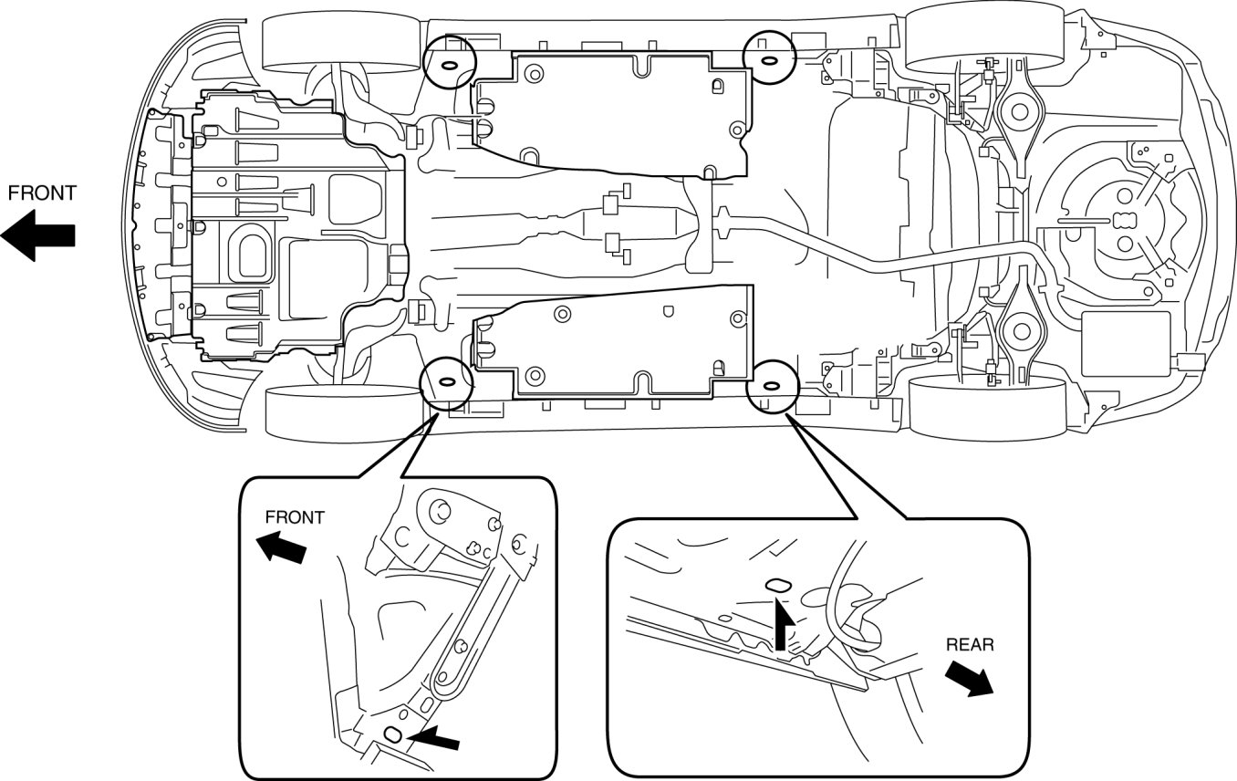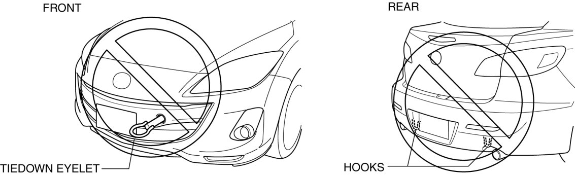 - To prevent damage to the vehicle, do not use the tiedown eyelet (front) and the left/right tiedown loops (rear) for towing the vehicle using another vehicle.