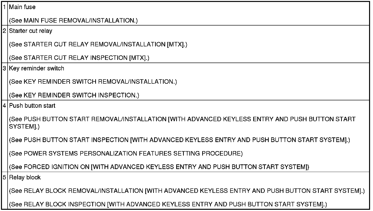 POWER SYSTEM LOCATION INDEX [WITH ADVANCED KEYLESS ENTRY AND PUSH BUTTON START SYSTEM]