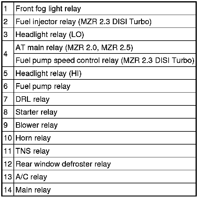 RELAY LOCATION [MZR 2.0, MZR 2.5, MZR 2.3 DISI Turbo]