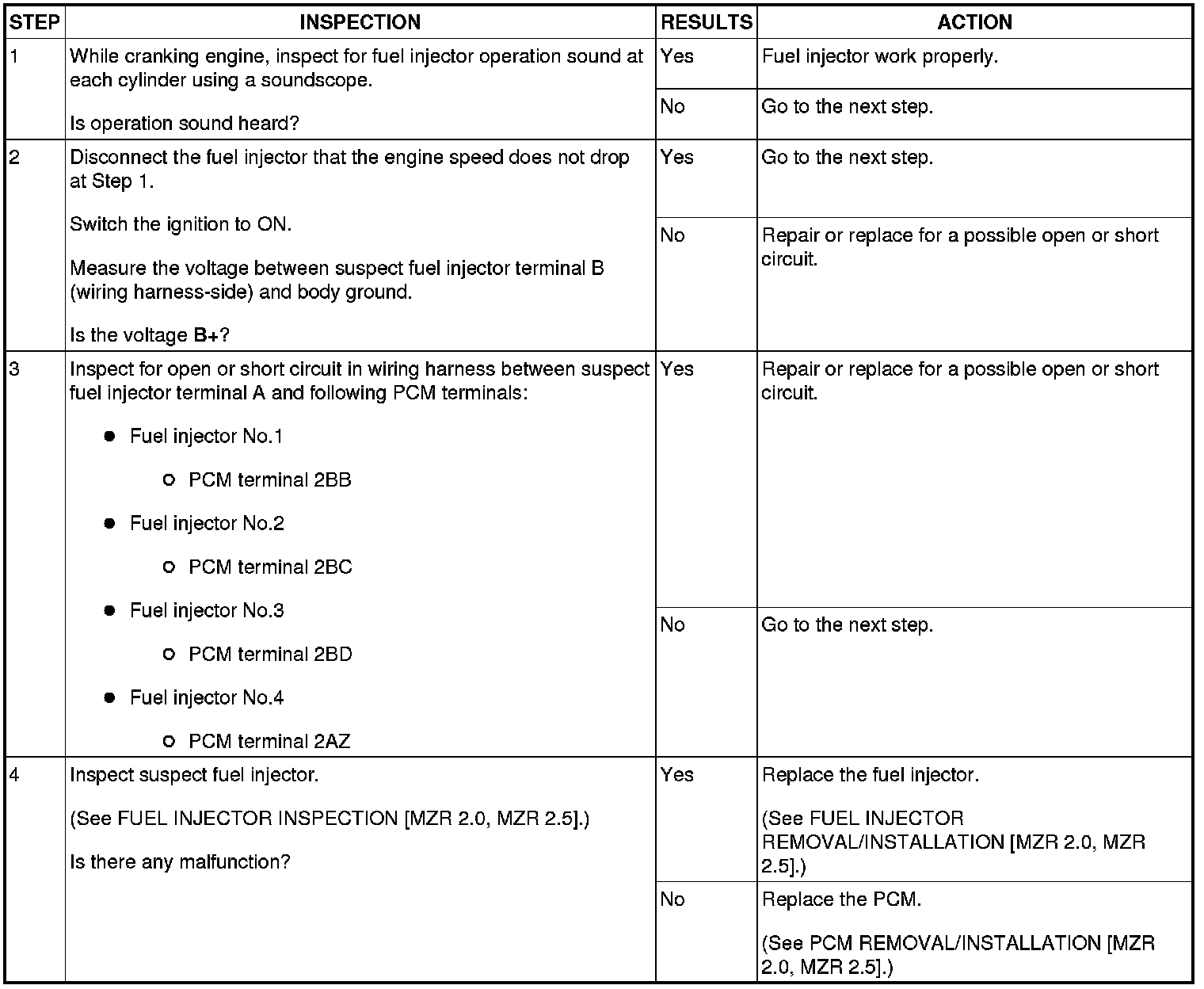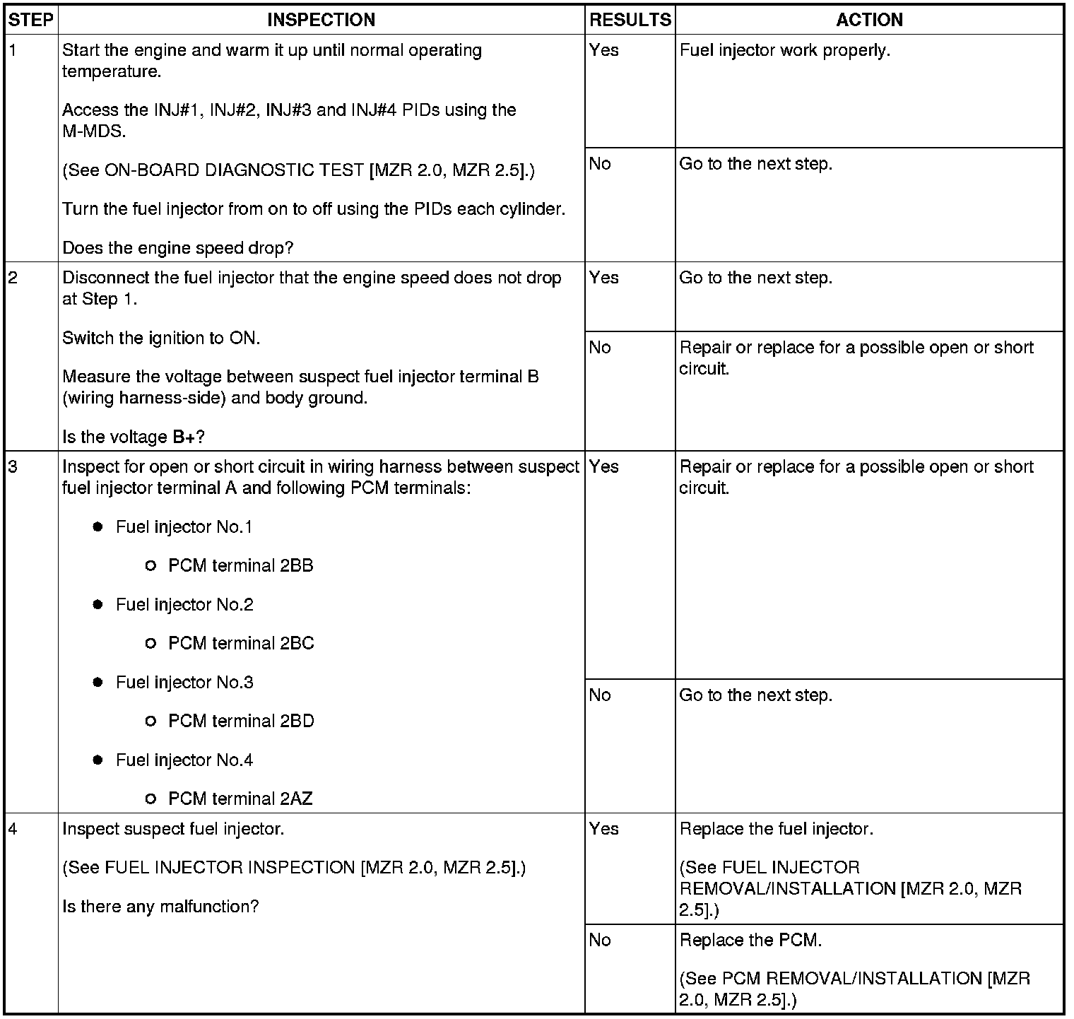 ENGINE CONTROL SYSTEM OPERATION INSPECTION [MZR 2.0, MZR 2.5]