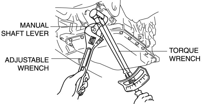 1. Set the adjustable wrench as shown to hold the manual shaft lever and tighten the manual shaft nut.