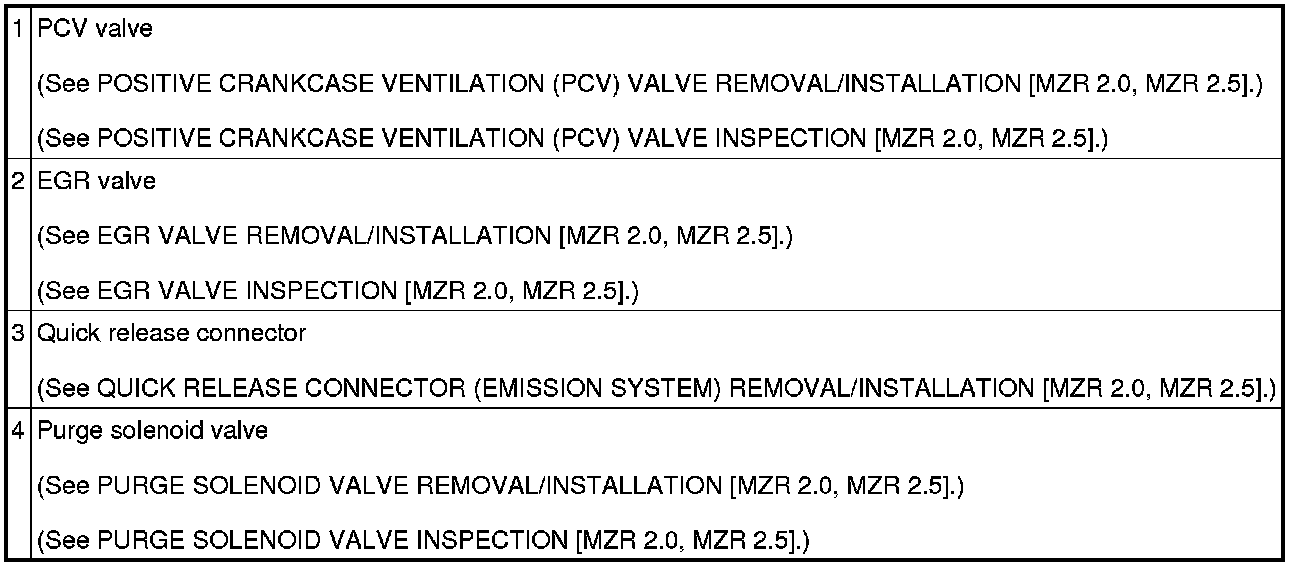 EMISSION SYSTEM LOCATION INDEX [MZR 2.0, MZR 2.5]